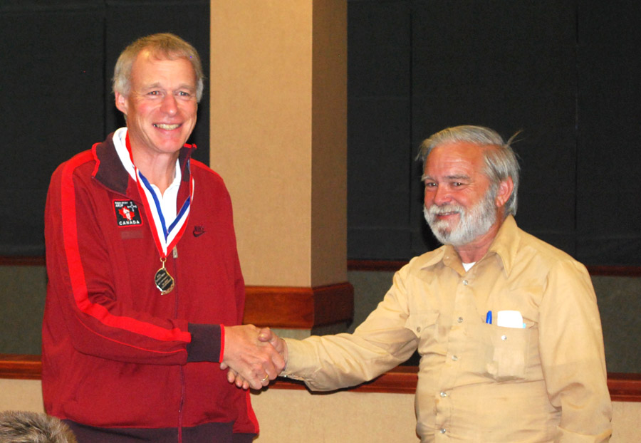 AARC’s Co-chairs of the organizers for this year’s championships were Jerry Boyd, WB8WFK, and Mike Pendley, K5ATM. Boyd was on USA’s team for the ARDF World Championships in 2004, 2006 and 2010. In addition to designing the courses and determining the transmitter locations, he played a big role in mapping and field-checking the venues. As host of the competitors, Pendley was the primary contact for the hotel and for the buses. He was also the emcee of the Saturday night banquet, when medals were presented to the 2 meter event winners.