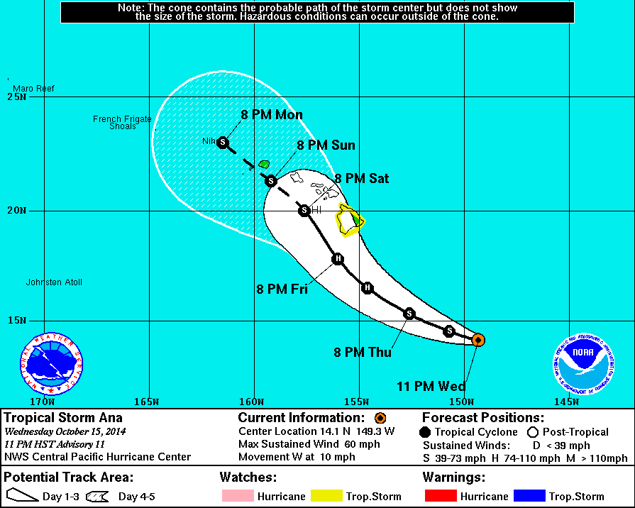 ![The projected track of Tropical Storm Ana as of 0900 UTC on October 16. [National Weather Service Central Pacific Hurricane Center graphic]](/img/130x97/exact/News/NHC-Ana 11 PM HST 10-15.gif)