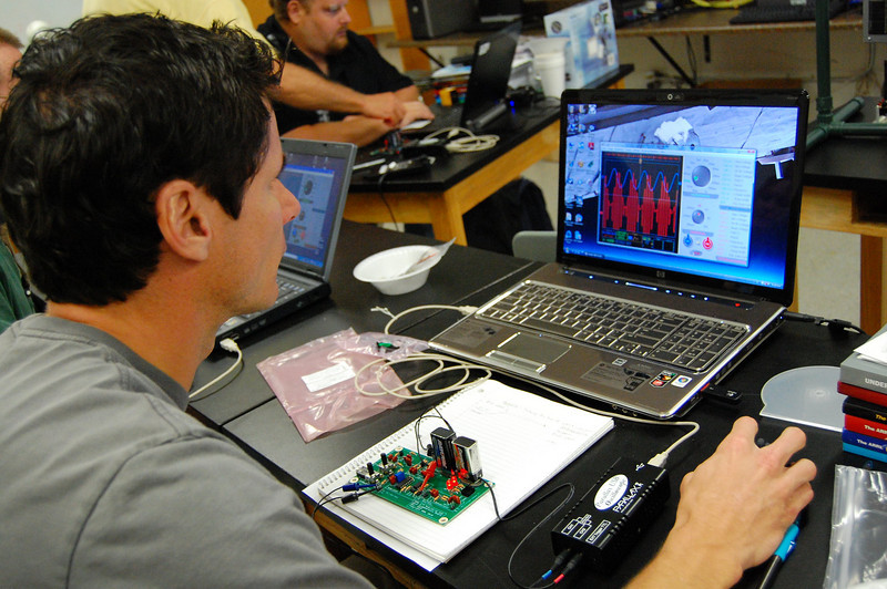 ARRL Teachers Institute Instructor Nathan McCray, K9CPO, made the trek to California to lead the next Teachers Institute. Held at Parallax -- the manufacturer of the BOE-BOTs that are used by TI participants -- this TI had students from all areas of the US, including Hawaii, Massachusetts, Florida, Texas and Wisconsin. Thirteen teachers were in the group, including four from the California Aerospace Academy.