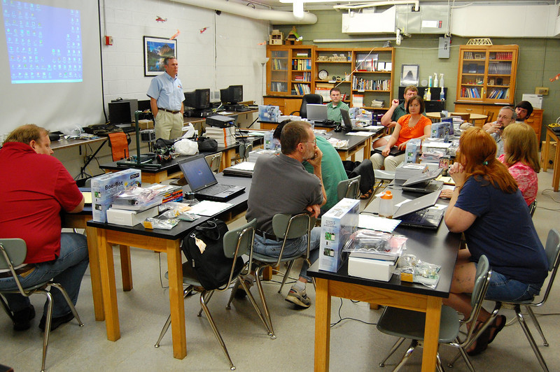 McCray said that on the third day of the TI, the group enjoyed a special treat, courtesy of Parallax. Andy Lindsay -- the curriculum designer and technical writer of What’s a Microcontroller, one of the books used in the TI curricula for use with the BOE-BOTs -- had re-written portions of the text and used the new set of PowerPoint slides in the class.