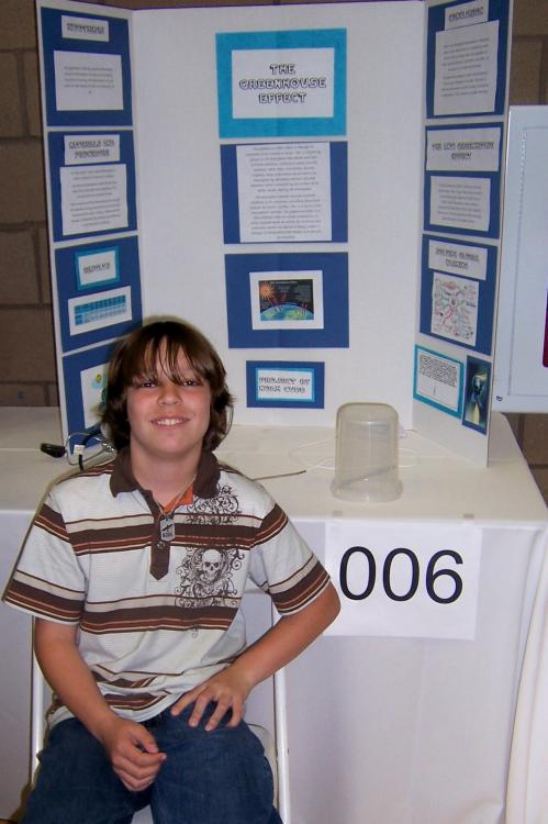 Noah Cudd did his project on demonstrating how the greenhouse effect works. His project explained the greenhouse effect with particular attention to how different gasses affect the atmospheric temperature. He expanded these results into a discussion of global warming and possible methods for counteracting the warming effect of greenhouse gasses. Noah is currently studying for his General class license.