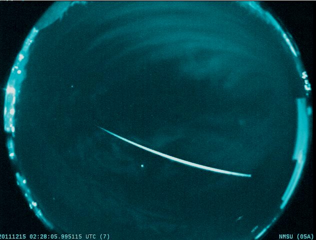 ![This false-color image of a 2011 Geminid meteor was captured by a camera at New Mexico State University, operated by the NASA Meteoroid Environment Office in Huntsville, Alabama. [Photo courtesy of NASA/MSFC/MEO]](/img/130x97/exact/News/Geminid.jpg)