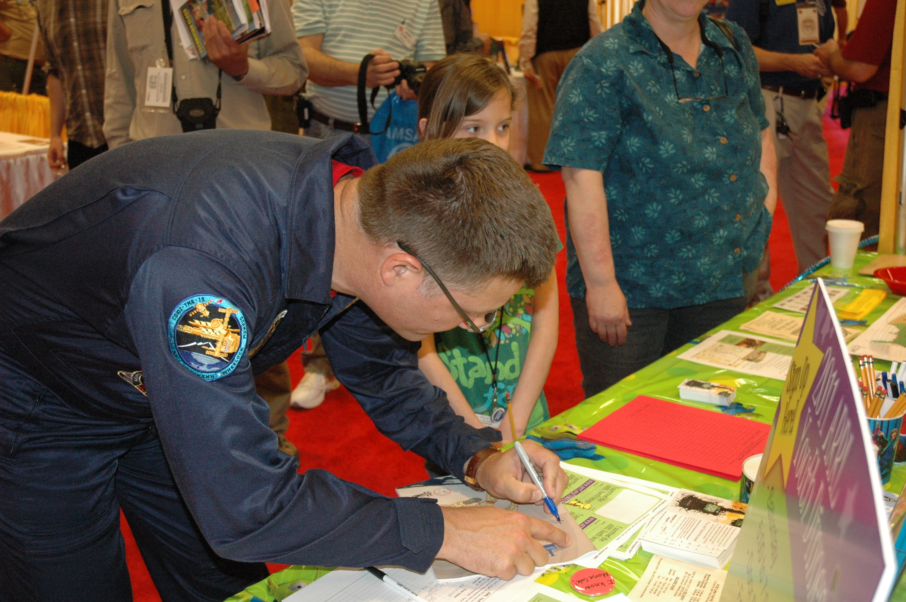 The ARRL Expo area drew large crowds throughout the day. The Friday morning highlight was a visit by astronaut Doug Wheelock, KF5BOC. He met with the ARRL staff and the representatives from the various international Amateur Radio societies that were also exhibiting at the ARRL Expo. Doug spent a couple of hours at the Expo signing autographs and posing for photographs.