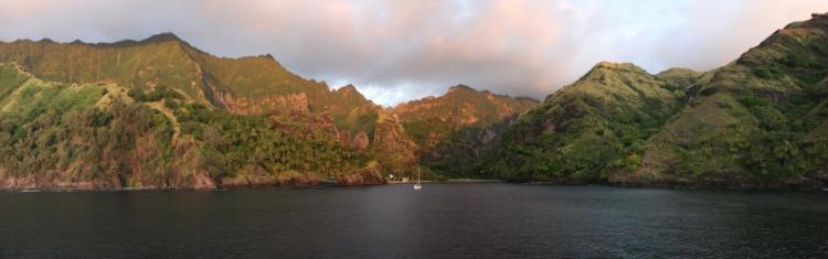 ![The Bay of Virgins at sunset, in Hanavave, island of Fatu Hiva, Marquesas islands, French Polynesia. [Sémhur/