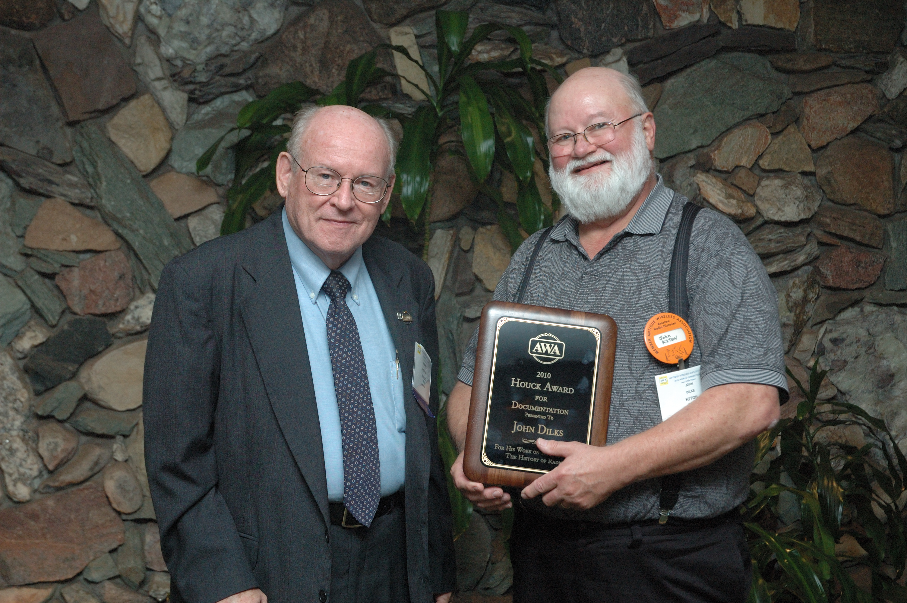 John Dilks, K2TQN -- who pens the “Vintage Radio” column in QST every month -- was awarded the AWA Houck Award for Documentation by the Antique Wireless Association (AWA) at their 2010 World Convention, held August 17-21 in Rochester, New York. This award is presented each year to an AWA member who has written original articles on radio development or history in the AWA Journal, AWA Review or other publication.