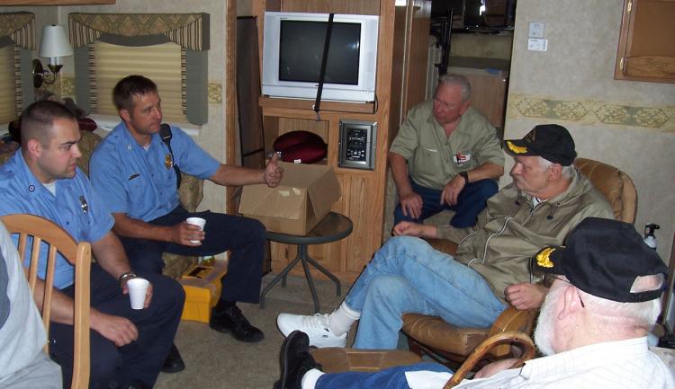 At sunrise, I drove to K0JZHs. When I arrived, the smooth sound of the big generator set had been replaced with the putt-putt of our club's little 800 W generator. This little trouper accompanied Bob Denniston, and other Iowa operators, to Clipperton Island on the FO8AJ DXpedition in 1954. It's still in use 54 years later! Anyway, I asked what was wrong with the big generator and was told that there had been a problem during the night. In the daylight it was easy to see which filler cap on the generator was for the gasoline and which was for the lubricating oil. In the middle of the night, however, when the generator ran out of gas an attempt was made to fill the gas tank by flashlight, but the crankcase was filled with gasoline by mistake! The mistake (with possible explosive consequences) was discovered almost immediately, but we couldn't use the big generator for the rest of the weekend. Yes, the color of the caps was changed from olive drab to red or white as needed and clearly marked the next time we used the generator.