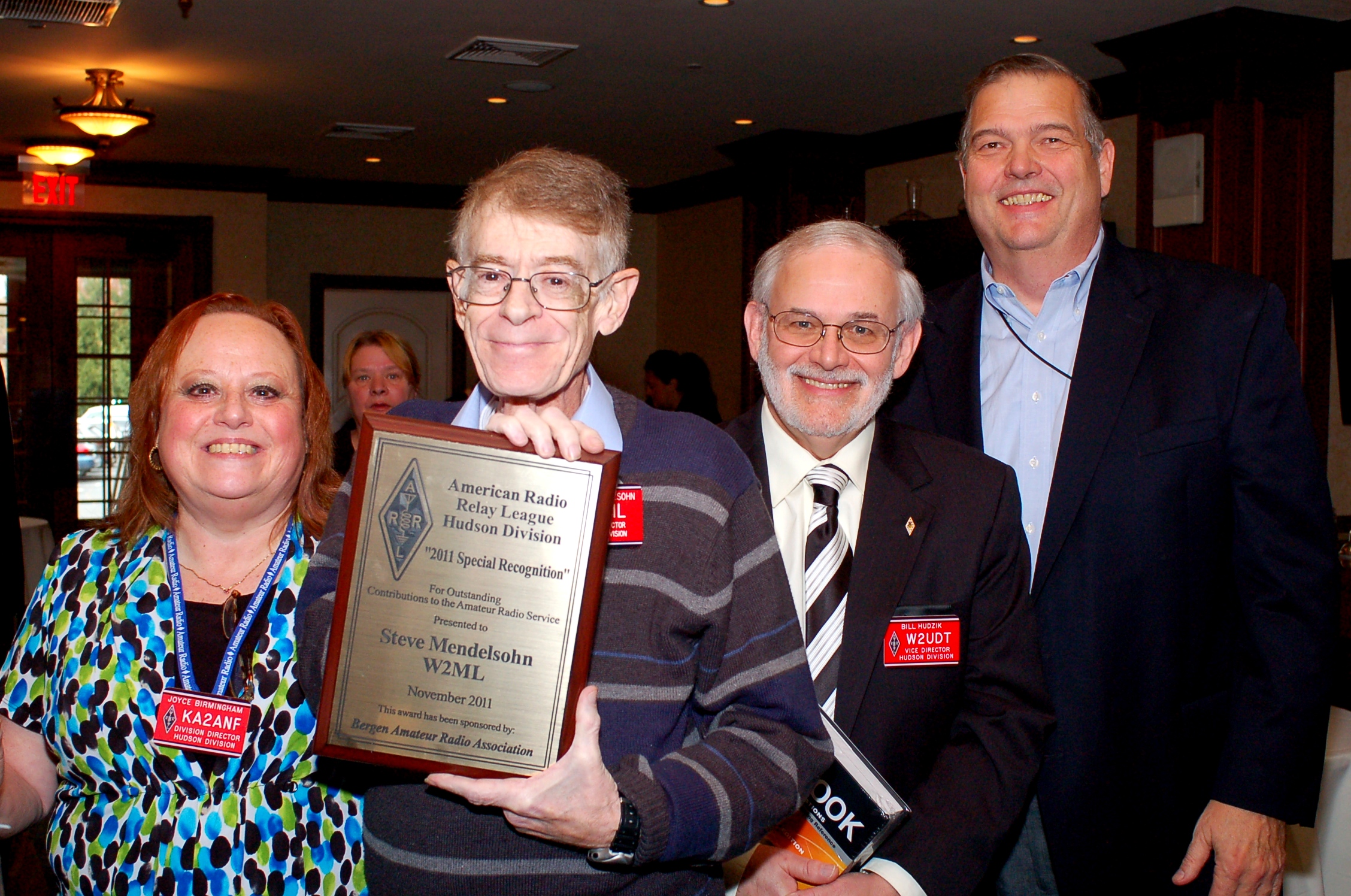 ![At the Hudson Division Awards Luncheon in November 2011, Mendelsohn was honored with a Director’s Special Recognition Award for his work in Amateur Radio in the Hudson Division. He was Nominated by Tom Raffaelli, WB2NHC. From left to right: ARRL Hudson Division Director Joyce Birmingham, KA2ANF; Steve Mendelsohn, W2ML; ARRL Hudson Division Vice Director William Hudzik, W2UDT, and Tom Raffaelli, WB2NHC. [Photo courtesy of Joyce Birmingham, KA2ANF]](/img/130x97/exact/News/W2MLawardGroupNov132011.jpg)
