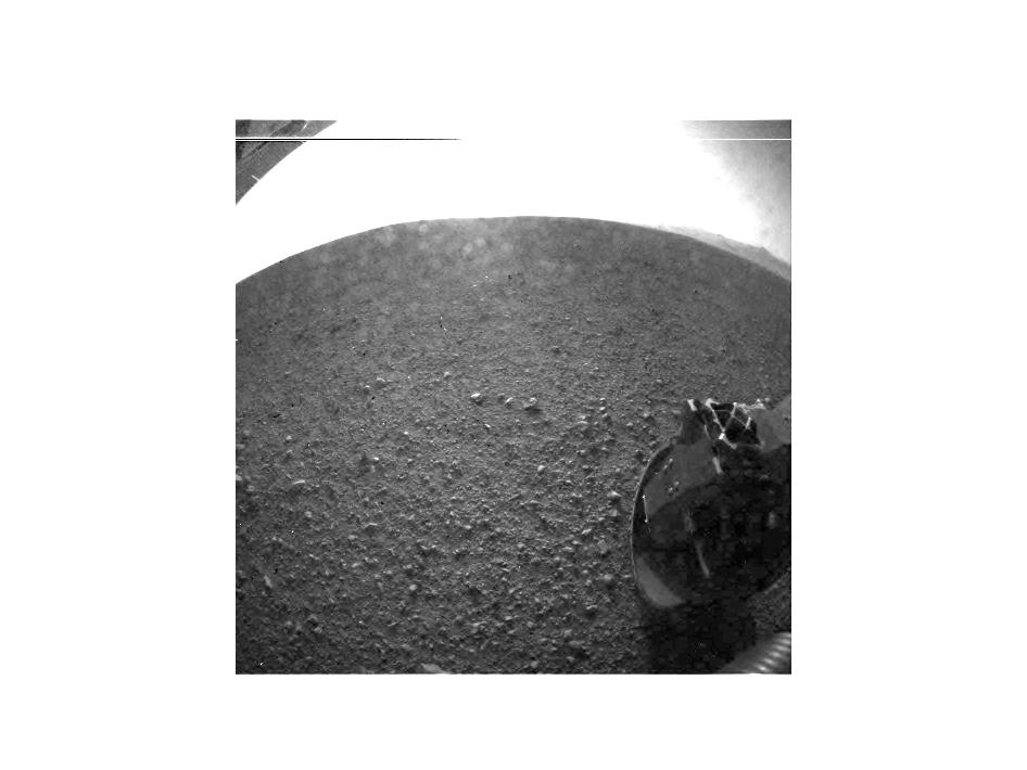 Two minutes after JPL Laboratory Engineer Al Chen exclaimed “touchdown confirmed” (near the foot of a mountain three miles tall and 96 miles in diameter inside the Gale Crater), the first image popped onto video screens -- a grainy black-and-white image that showed one of the rover’s wheels and the Martian horizon. A few minutes later, a clearer version appeared, and then came another image from the other side of the rover. “That’s the shadow of the Curiosity rover on the surface of Mars,” explained Robert Manning, the project’s chief engineer.