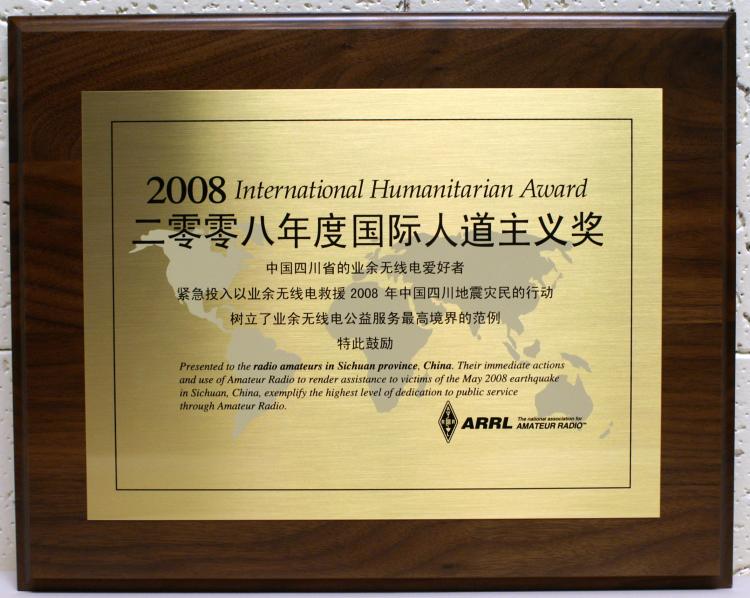 The deadline to nominate an amateur or group of amateurs for the 2009 ARRL International Humanitarian Award is coming up fast -- December 31, 2009. This award is conferred upon an amateur or amateurs who demonstrate devotion to human welfare, peace and international understanding through Amateur Radio. The League established the annual prize to recognize Amateur Radio operators who have used ham radio to provide extraordinary service to others in times of crisis or disaster.