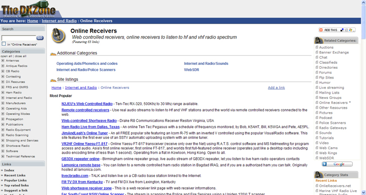 Poking around The DX Zone, I found more cool stuff you can hear when you tune your computer to the correct URL. For example, the Live Streaming Web page lists Web sites that feed live audio from a variety of ham radio stations including FM repeaters, EchoLink operations and contest stations. In addition to the live ham feeds, the list also includes an online receiver that monitors signals from Jupiter and the Sun, as well as live audio streams of VLF "natural radio" sounds. You can also listen to how the other half lives by checking out live audio from the Citizens Band.