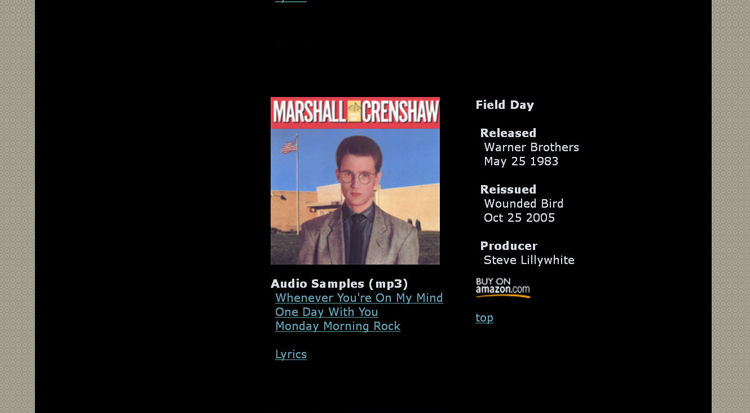 By the way, Field Day, in my opinion, was a disappointment. It had some good tunes, but was not as good as Crenshaw’s self-titled first album. Isn’t that usually the case? The debut album is great, but the follow-up album, not so much.