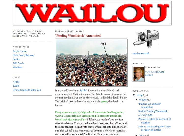 By the way, in last week's Surfin', I left out some of the details about my Woodstock experience, so as not to make the column too long. For anyone interested, I annotated that column and you can read all the gory details here.