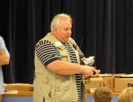 I was probably the newest member of our group in 2007. The other guys had previous experience and knew some of the "stuff" to bring along that would interest the kids. Among the equipment we brought was a portable 2 meter repeater normally used for EmComm purposes and various handheld transceivers. Since my main interest is in talking through the birds, I had stashed my new Kenwood TH-D7A handheld transceiver and a dual band Arrow handheld beam; but Jim brought along a special surprise that we saved until last.