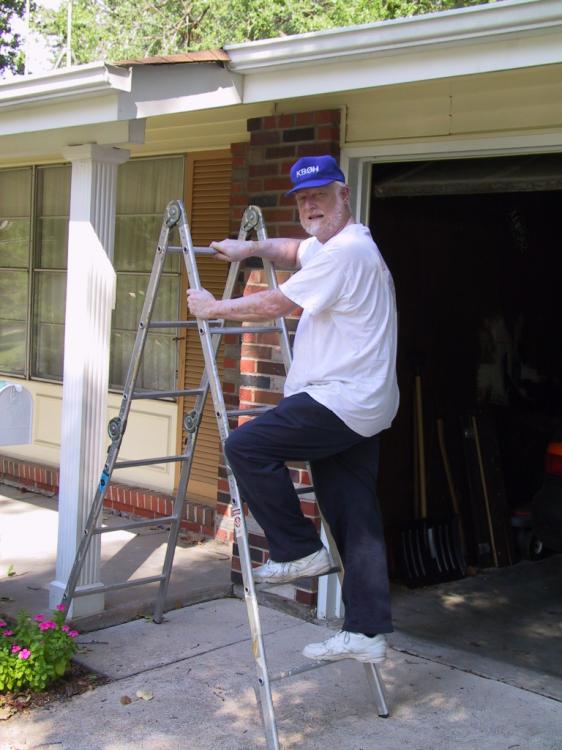 Now he's going back up the ladder. It scares me every time he goes up there. If he goes tumbling off the edge of the roof I won't even know it. Not unless he has the good sense to scream on the way down. At least then I'll know to call for an ambulance.