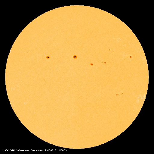At 0600 UTC on March 15, the Australian Space Forecast Centre reported that a sudden impulse of 22 nT (nanotesla) was detected in magnetometers at 0527 UTC. Due to a coronal mass ejection (CME), increased geomagnetic activity is predicted on March 15-16, and minor storm periods at high latitudes are possible. The M1 class solar flare and its accompanying CME were Earth-directed. Both came from sunspot group 1692, right in the center of the visible solar disc viewed from Earth.