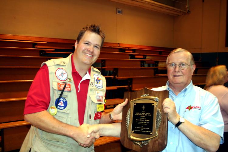 In early October, Brian Short KC0BS, was presented with the Herb S. Brier Instructor of the Year Award. This prestigious award is given to those who have done much for Amateur Radio through elmering and recruiting. Brian not only started a ham class licensing with friends Matt May, KC4WCG, and Carolyn Wells, KD0CJW, helping more than 500 people earn their Technician class license, but he is an awesome elmer (and to be fair, Brian is also my cousin).