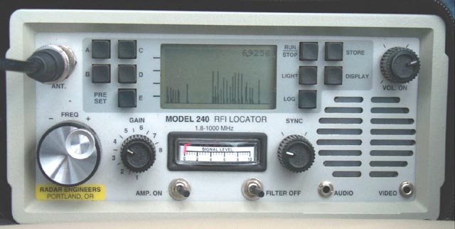 Interference locating receivers, such as the Radar Engineers Model 240 previously shown in Figure 6, have a built in oscilloscope display and waveform memory. They are ideal for the third method described in the previous paragraph. This is now the preferred method used by professional interference investigators. It provides the ability to toggle between the pattern saved at the customer's house and those from sources located in the field.
